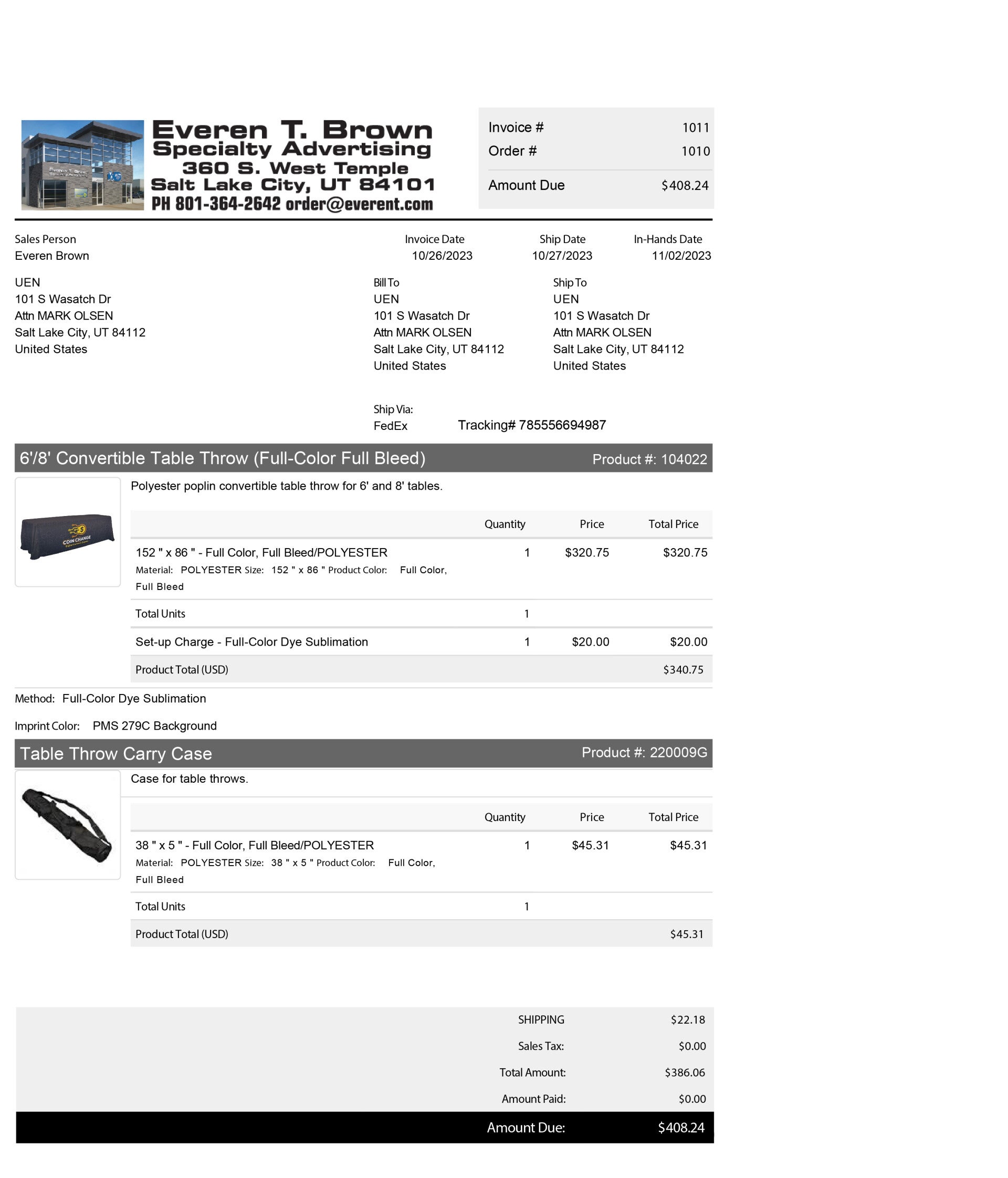 Mark, If it is easier to pay Invoice 1011 for the $408.24